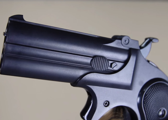 Mach Sakai goes for the small Crown Model Derringer airsoft pistol. Whilst it looks like a toy, this is restricted and only people aged 10 and above can purchase this pistol. It has a range of 25 metres and a legnth of 128mm.