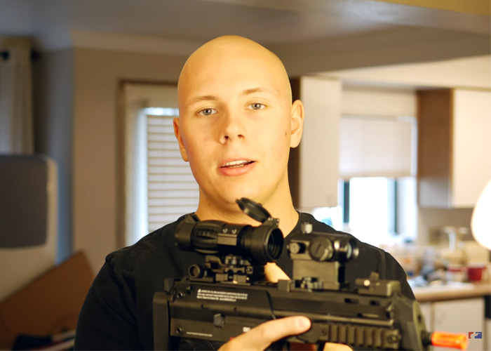 See the custom gas blowback rifle put together by the TheDevildogGamer see some action in the airsoft field.
