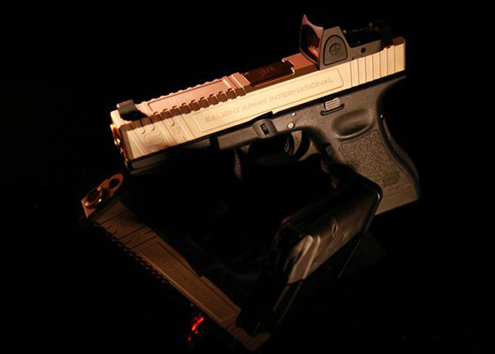 The latest custom work from Impact Force CQB is the Impact Force SAI Style Glock 17 RMR Gas Blowback Pistol in FDE.
