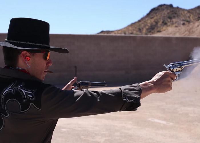 Watch Travis Haley of Haley Strategic Partners as you've never seen before, in full cowboy get up as he tries to be the fastest gun in the Wild Wild West with revolvers and lever action guns...