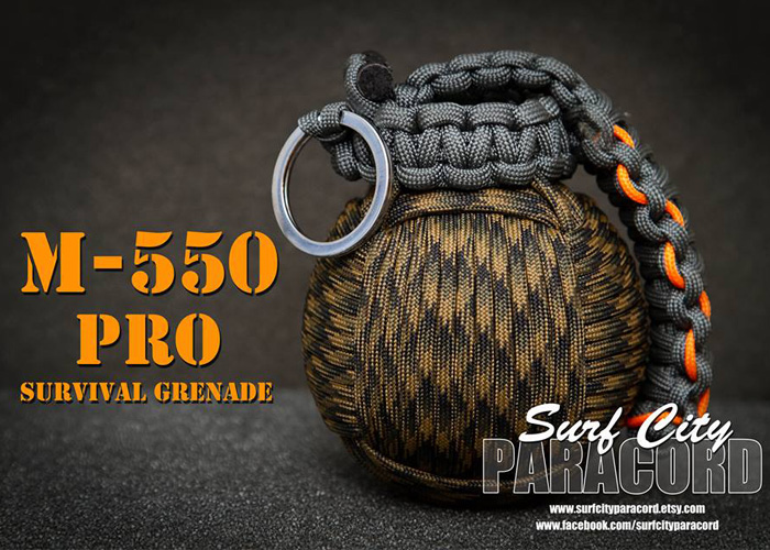 Surf City Paracord posted on Facebook photos of their newly released M-550 Pro Paracord Survival Grenade that contains a good number of tools needed for survival.