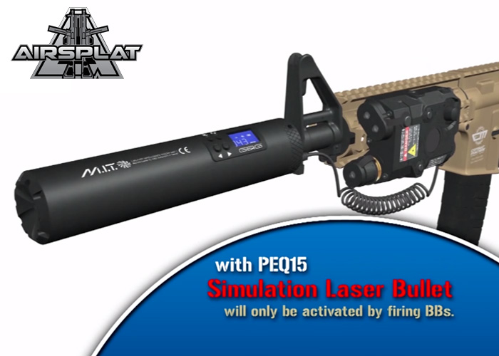 AirSplat on Demand features the G&G Military Intelligence Tracer Unit (M.I.T. Unit) which is a chrono, laser, ROF counter, a simulated laser bullet (think of it as laser tag). This unit is powered by a Lipo Battery. Used with the M.I.T.