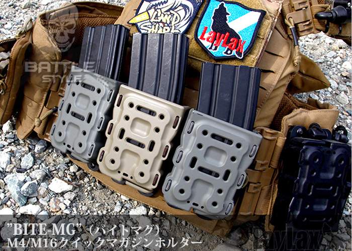 Laylax announce the BITE-MG M4 Quick Magazine Holder which they are expecting to be in stock in July 2015. This is a plastic magazine holder that enables a quick magazine change, or for those who prefer it, a quicker tactical reload.