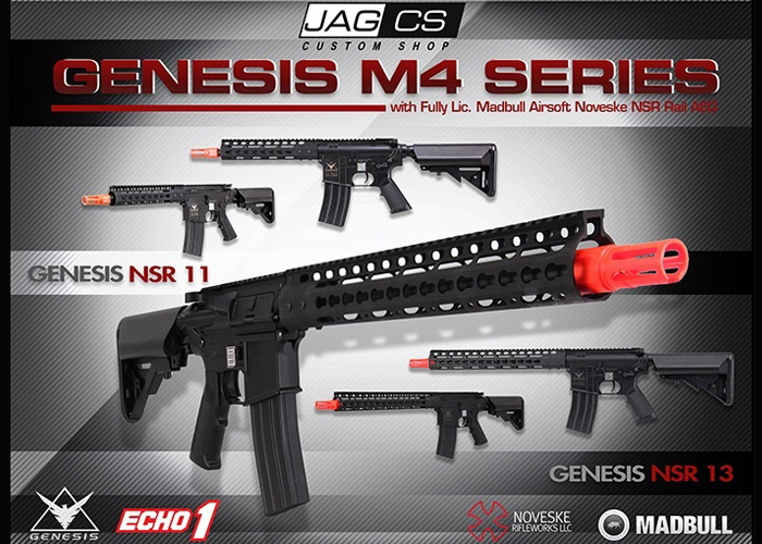 Another line of custome AEGs from Jag Precision using the Echo1 Genesis M4 with the Noveske NSR KeyMod Rail Systems... "Fully Licensed by Madbull Airsoft the 11in. & 13in.