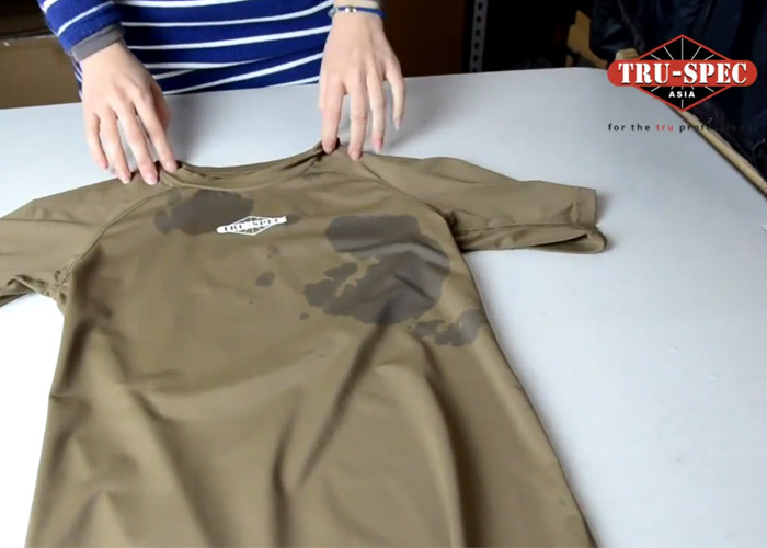 eHobby Asia uploaded a video about the Tru-Spec Asia Dry Fit Shirt which they tested the textile's moisture management capabilities by sprinkling water over it.