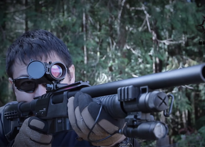 Mach Sakai goes shotgun again as he reviews the Marizen CA870 Tactical Shotgun. He says that it's accuracy is high and it will work well in an airsoft skirmish as it is easy to fire. There is no magazine catch button and it's easy to swap magazines.