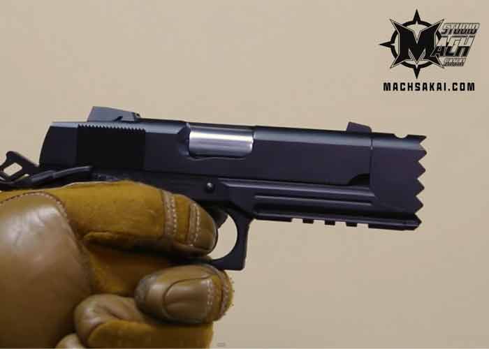 In this review by Mach Sakai, he covers a pistol made by Tokyo Marui which has a distinct front-end, the Tokyo Marui 4.3 Strike Warrior Gas Blowback Pistol.