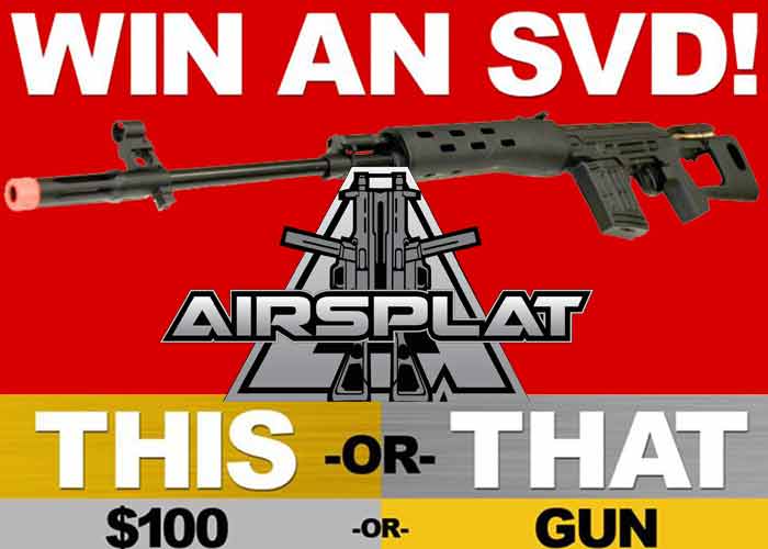 More "This or That" perks from AirSplat.com as they add an AY SVD Dragunov Springer for anyone to win... "Like, Comment, & Share for a chance to win a $119.99 VALUE AY Dragunov SVD!