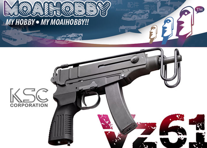 Now in stock at Moiahobby is the KSC vz61 HW Gas Blowback Machine Pistol. This uses the System 7 gas blowback system with ability for full automatic and semi-automatic firing.