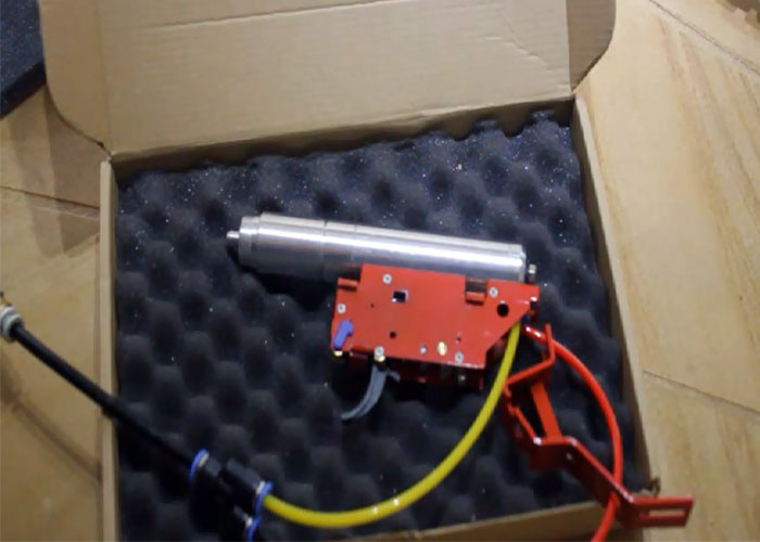 At the Evike.com's Airsoftcon 2014, Josh and Adella Relentless were the shooting range to let players have their chance to try the Valken Tactical V12 Drop-in HPA Engine that can be used with AEG bodies.