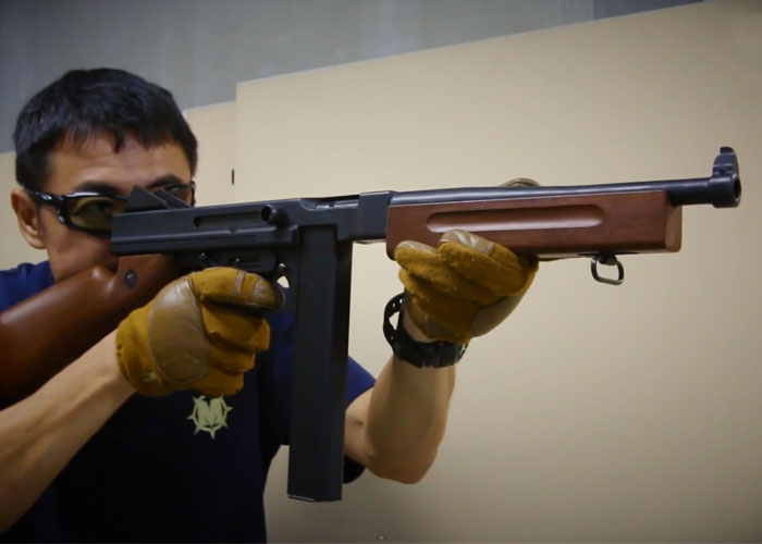A timeless gun's airsoft version gets reviewed by Mach Sakai. The Tokyo Marui M1A1 Thompson, a favourite of collectors and reenactors is the AEG that gets the scrutiny of the champion shooter.