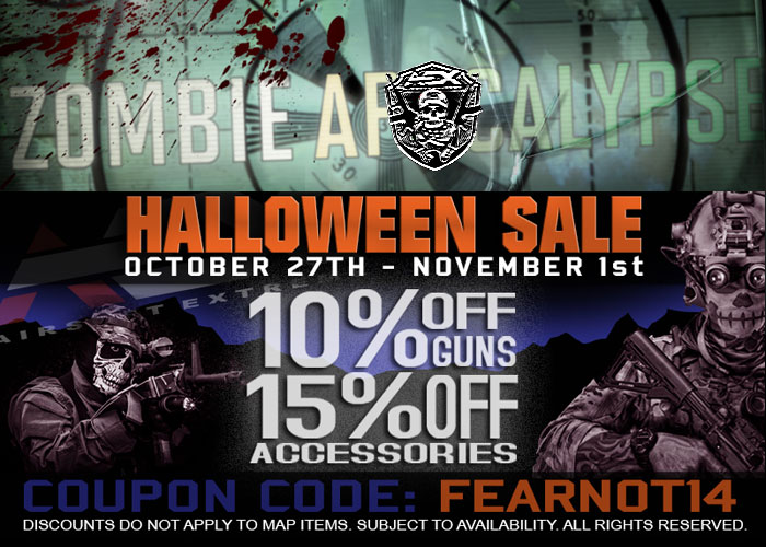 Better load up on a lot of gear and ammo from Airsoft Extreme as you go to the nearest halloween/zombie theme even later this month. They are having an AEX Halloween Sale from the 27th of October to the 1st of November...