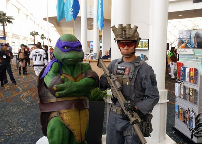 Spartan117gw gets to meet a live and in person, errr... turtle, a Teenage Mutant Ninja Turtle which looks like Donatello (identified with the Purple Mask), as he attended the Long Beach Comic Con 2014 last 27-28 September.