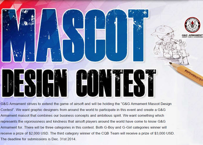 Big cash prizes and a raffle prize of a G&G EBR wait winners with this G&G design contest... "G&G Armament strives to extend the game of airsoft and will be holding the G&G Armament Mascot Design Contest.