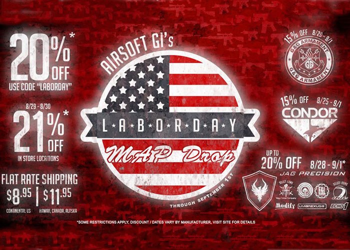 With their MAP drop starting today PST, Airsoft GI are also throwing in a coupon discount for the Labor Day weekend. Also, they are now taking pre-orders for the Krytac Trident LMG...