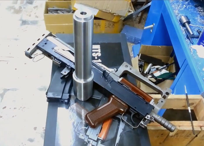 That's a big, big can being designed by Hephaestus Airsoft for their HTs-14 Gas Blowback Bullpup that was developed together with GHK Airsoft.