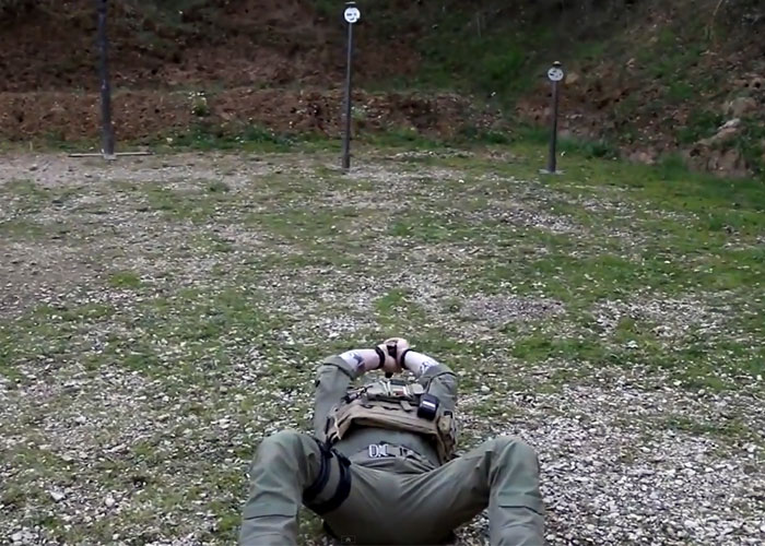 Instructor Zero of Funker Tactical demonstrates how to shoot upside down. This is probably one of the shooting positions we hope that we don't get into, engaging targets whilst shooting in an inverted position.