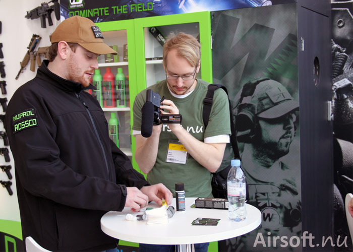 The Swedish duo from Airsoft.nu, Daniel and Mikael, dropped by the booth of WE Airsoft Europe where they got hold of Ross Tucker to discuss what's the latest from the company such as the NuProl Gasses for