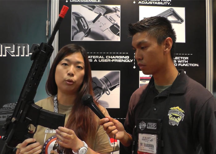 Jet del Castillo of DesertFox Airsoft also visited the booth of ICS during the SHOT Show 2014. He finds Rain to help explain what their new product, the Transform4, is all about.