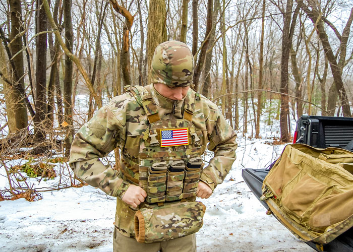 Eric goes over the High Ground Gear Plate Carrier in Multicam pattern... "Material-wise, the Plate Carrier is made from 500D Cordura and weights in at 2.5 lbs. We did our testing with the Team Wendy Training Plates, which weight in at 5 lbs each.