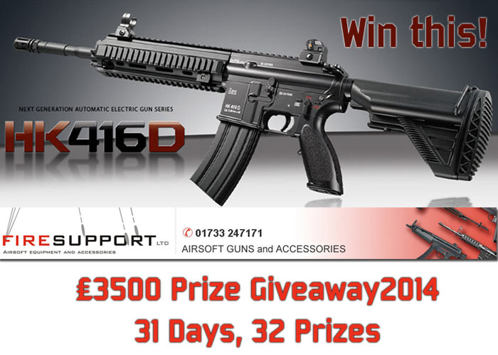 With the start of the new year, we begin the year with Firesupport's exciting giveaway event where they are giving away 32 prizes for 31 days worth £3500 with the grand prize being the Tokyo Marui HK416D New Generation AEG with 2 magazines.