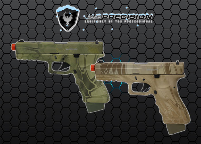 Lots of colour and camo pattern choices such as Kryptek patterns with the APS ACP Pistols which are now available for wholesales at Jag Precision...