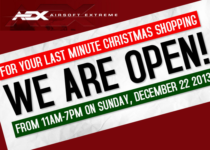 Be comforted by the fact that when you think you still need to more last minute airsoft Christmas shopping, Airsoft Extreme will be open for you until Sunday, 22 December, so you can get that airsoft stuff you want to give to yourself or to yo