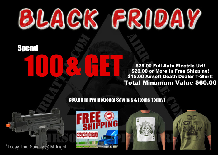 Here's Daniel to give you some tips on how to get more bang for the buck during Black Friday and Cyber Monday Sales... "Happy Thanksgiving! We wanted to give you a quick update as to all the savings that are going on at AirsoftGI, to help you maximize the amount of money you can save.