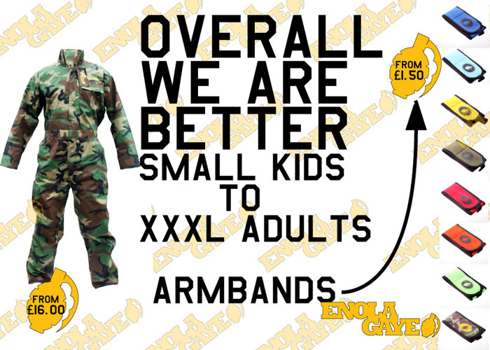 Skirmish sites and game organisers looking for stuff to rent out and properly organise skirmishers can look into the Overalls and Armbands from Enola Gaye.