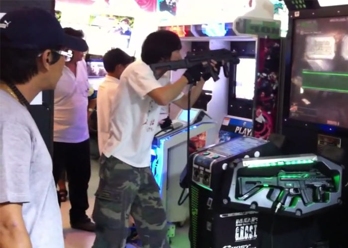 We blame ourselves fully for not catching this video on YouTube early on. Obviously this is a viral video with over 3 million views for over two years now showing a Thai arcade gamer really putting his heart into a shooting video game. Better recruit him to your airsoft team quick!