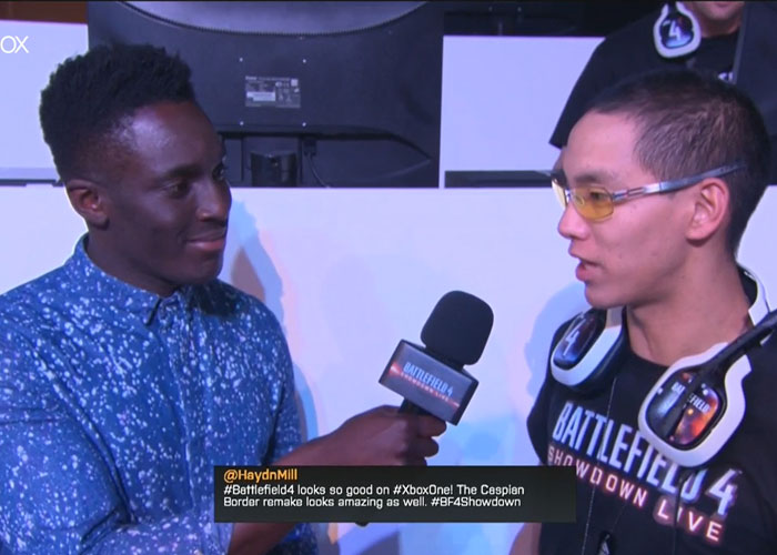 Above photo shows the airsoft's pride, Spartan117gw, being interviewed right after Round 1 where the USA took the first round in the Battlefield 4: Showdown Live - Europe vs.