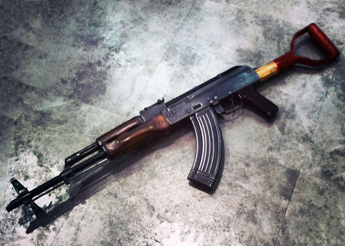 How about that, the custom AK gas blowback rifle that comes with the most handy stock ever according to them --- a shovel handle!