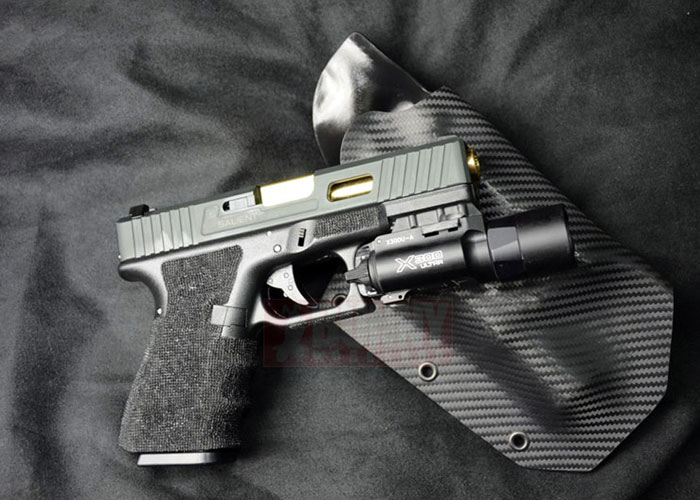 Take a look at these custom Kydex Carbon Fiber holsters being made by Bunny Workshop and the following are aready done for the Glock 17, Hi-Capa 4.3 with X300 Light, Glock 19 with light, HK45 with light, and PX4 Sub Compact...