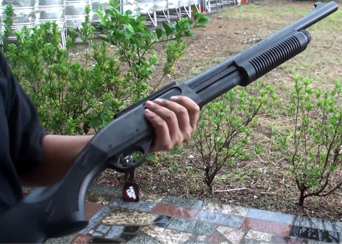 A preview of the Tokyo Marui Model 870 Gas Powered Tactical Shotgun by RA-Tech as Typhoon Usagi gathered strength in the area, making the review location a very wet one.