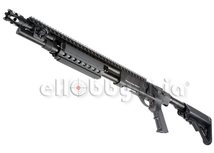 With a fully railed version of the M870 and full metal body, this G&P Medium Breacher Shotgun is a 1/1 Scale High Performance Assembled Spring Powered Shotgun, with Aluminum,PA & Die-Cast Construction and features the G&P Custom Bump Action System.
