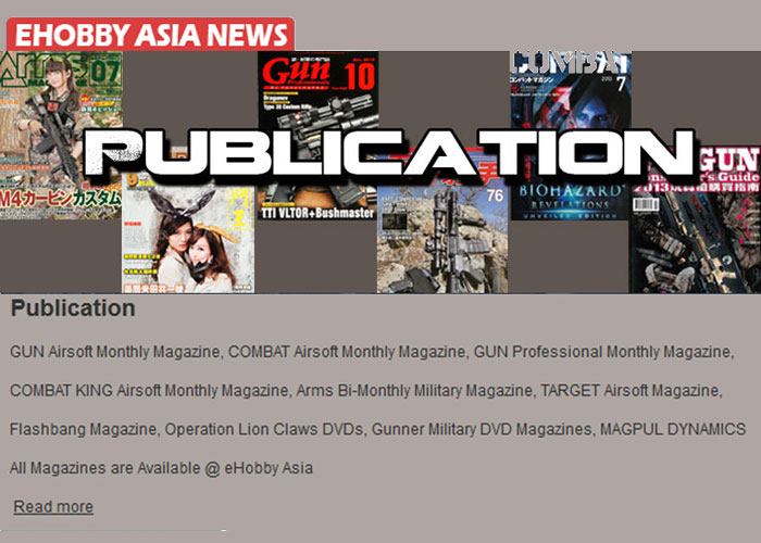 For this week's product news from eHobby Asia, they announce that they have all the airsoft publications available, especially those magazines coming from East Asia where you get some fantastic stories about products and events, as long as you un
