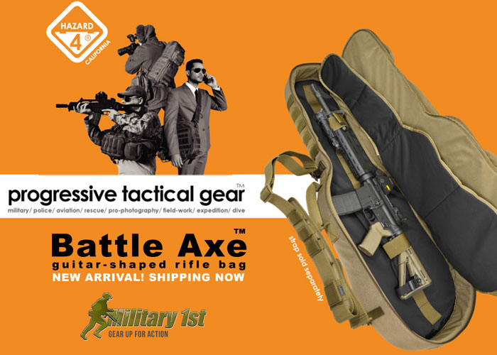 The bag the we want to have which gives you an impression of carrying another Axe that would make Slash turn green with envy is now available at Militar1st.co.uk... "The Battle Axe from Hazard 4 is a unique rifle bag specifically designed to look like a guitar case.
