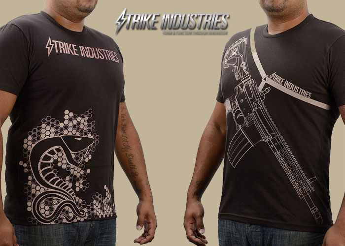 Strike Industries released two more shirts in their Apparel collection with the Kryptic Cobra and Gunslinger. As denoted by their shirt names the Kryptic Cobra sports a Cobra Design whilst the Gunslinger shows an AR-15.