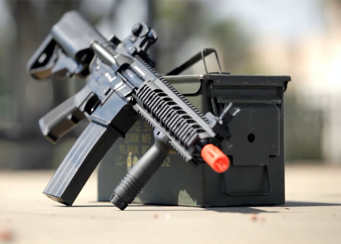 Soon to be available at the Evike.com online store is the ASG LM4 Defender AEG which is built by G&P. This AEG has a one piece upper receiver with rail system a stable monolithic system when mounting weapons accessories such as optics and lights.