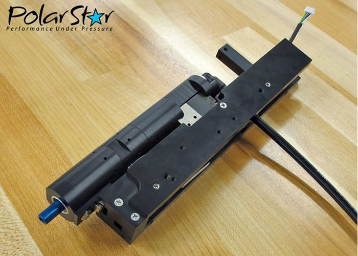 The progress of the PolarStar Airsoft Fusion Engine for the M249 AEG is humming along as the photo above show what seems to be pre-production version of the drop-in gearbox replacement to use HPA as power source.