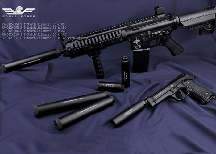 More announcements from V Production as they announce their new Eagle Force S.T. Smith Silencer Series that can be made to fit airsoft M4s and pistols.