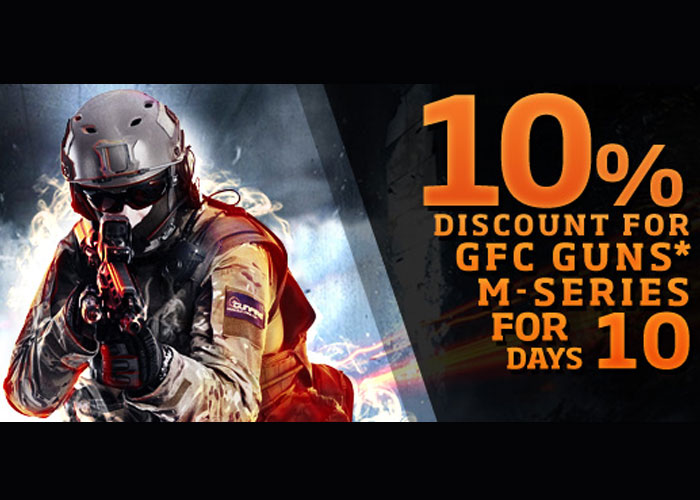 Another chance to save more when buying at Gunfire as they're taking 10% off on the prices of their GFC airsoft guns... "Jackpot! Gunfire starts with 10 day long sales. Prices of all legendary GFC GUNS Ms are 10% lower!