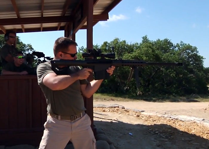 Well, if you think you can't hit a target at 1,000 yards with a Barret Sniper Rifle off hand? Think again, this guy made it. But of course he's a highly trained sniper... "This took place at one of our Texas Triggers spring events.