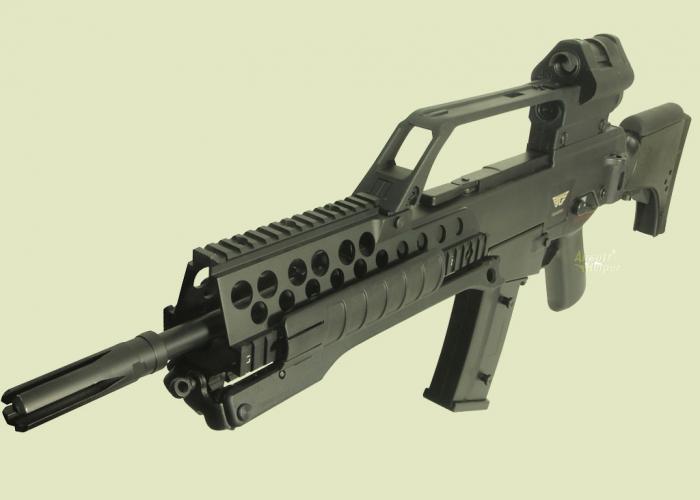 Jing Gong fans can check this G36KVE RAS at Airsoft Helper as it is a rifle that comes loaded with features such as folding stock and bipod which can be easily retracted to its handguard. This AEG is made of high strength Polymer Body and with scope and red dot sight.