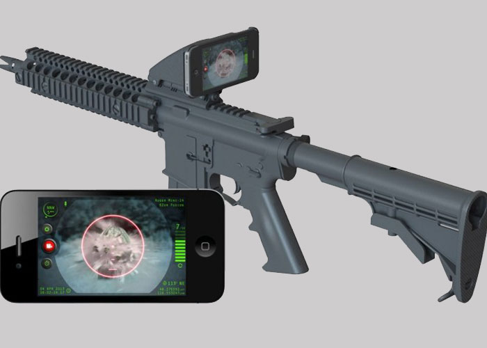 An interesting product reported by The Firearm Blog that can utilise your iPhone properly on your rifle.