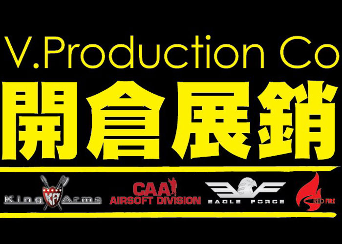 Hong Kong Airsoft players are lucky when the outlet sale from V. Production opens on the 10th of May at the V. Production Headquarters at the Shell Industrial Building in Chai Wan (just right outside the MTR station).