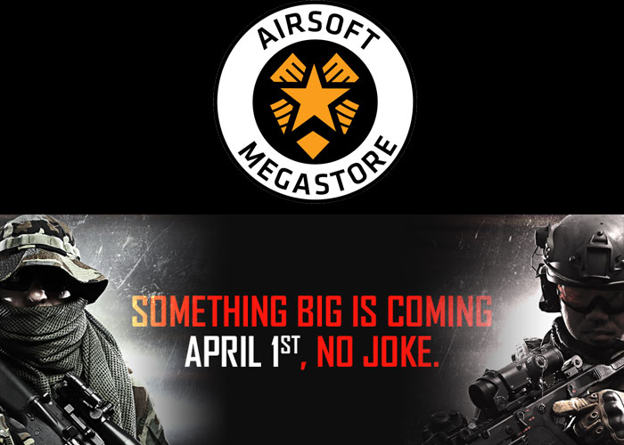 Well, they say it's no joke, but we're not taking our chances... "On April 1st 2013, 4:00PM PST, something BIG is coming to Airsoft Megastore. We can’t tell you exactly what it is, but we can guarantee that it’s not a joke. What we can tell you is we’ve never done anything quite this big and exciting before.