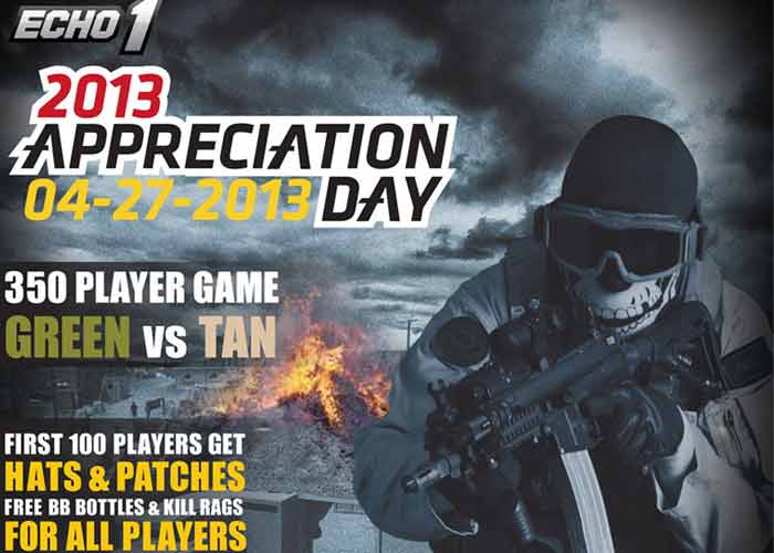 It's a month from now before the Echo1 USA Appreciation Day, check your schedule and book your slots... "Hello! Finally the moment that everyone has been waiting for is finally here! Echo1 will be having their annual 2013 Appreciation Game on April 27th at the famous SC Village in Chino, CA.