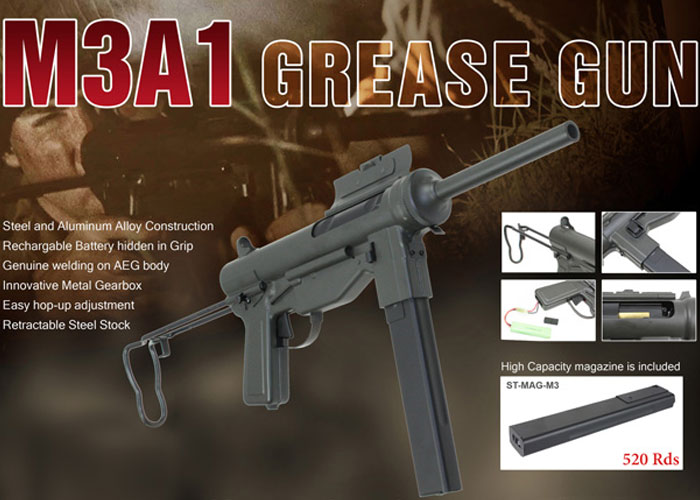 Tiger111HK sends in a very short list of new items that are available at their online store for this week and it's comprised of the Olive Drab colour of S&T Armament M3A1 Grease Gun AEG, the WE Raptor M4 Katana in Tan, and the G&P AK T