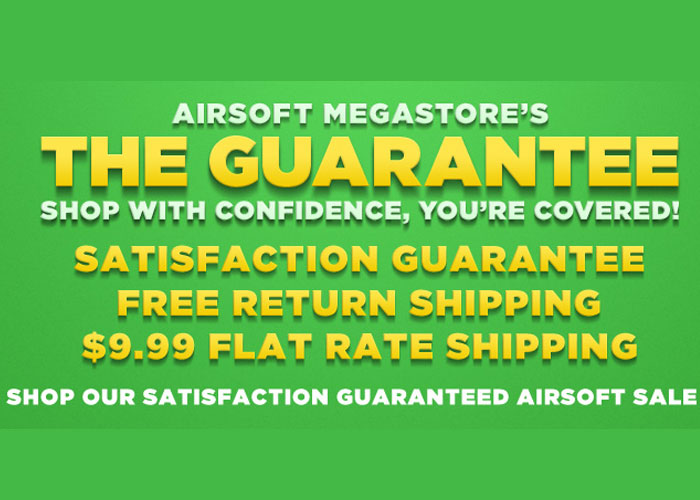Another sale from Airsoft Megastore and they offer satisfaction, guaranteed... "Don’t forget that Airsoft Megastore’s The Guarantee is currently in full effect. We now offer upgraded satisfaction guarantee, free return shipping, and $9.99 flat rate shipping along with our free shipping on orders over $149.